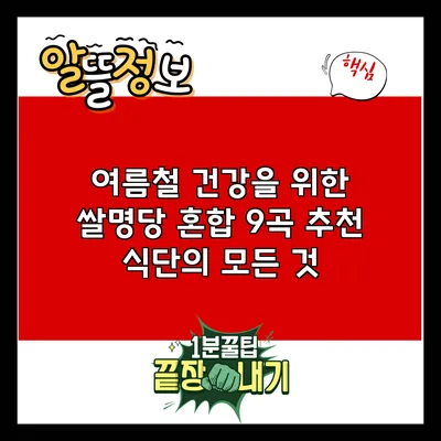 여름철 건강을 위해서는 쌀명당 혼합 9곡을 식단에 적극적으로 활용하는 것이 좋아요. 이 식단은 건강을 증진시키고, 여름철을 시원하게 보내는 데 큰 도움이 됩니다. 스스로의 건강을 챙길 수 있는 기회를 만들어보세요. 건강은 소중하니까요!